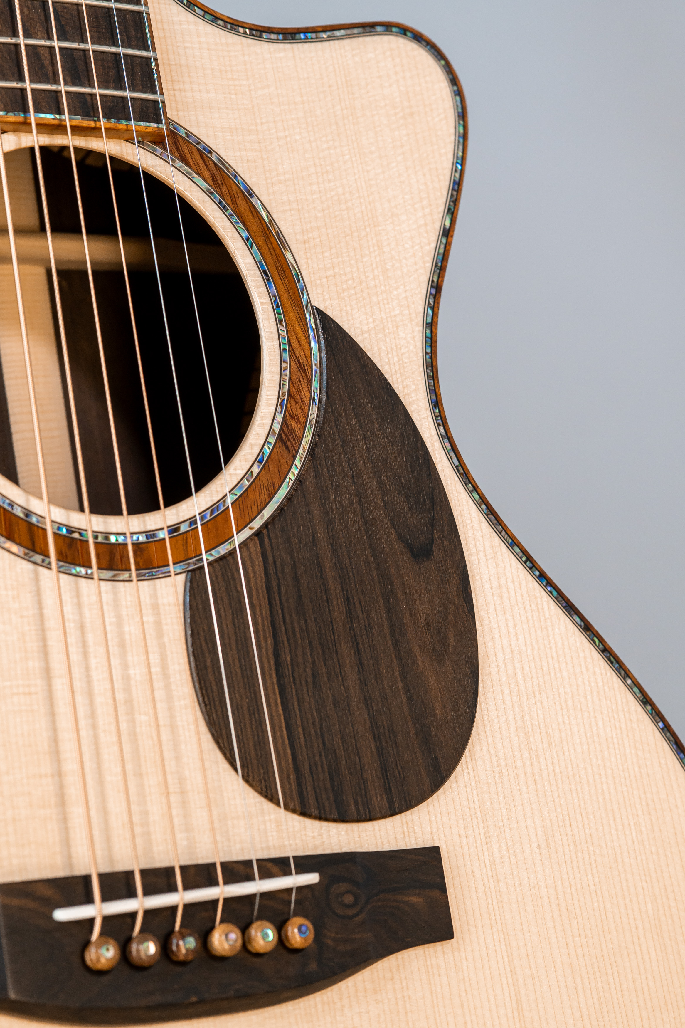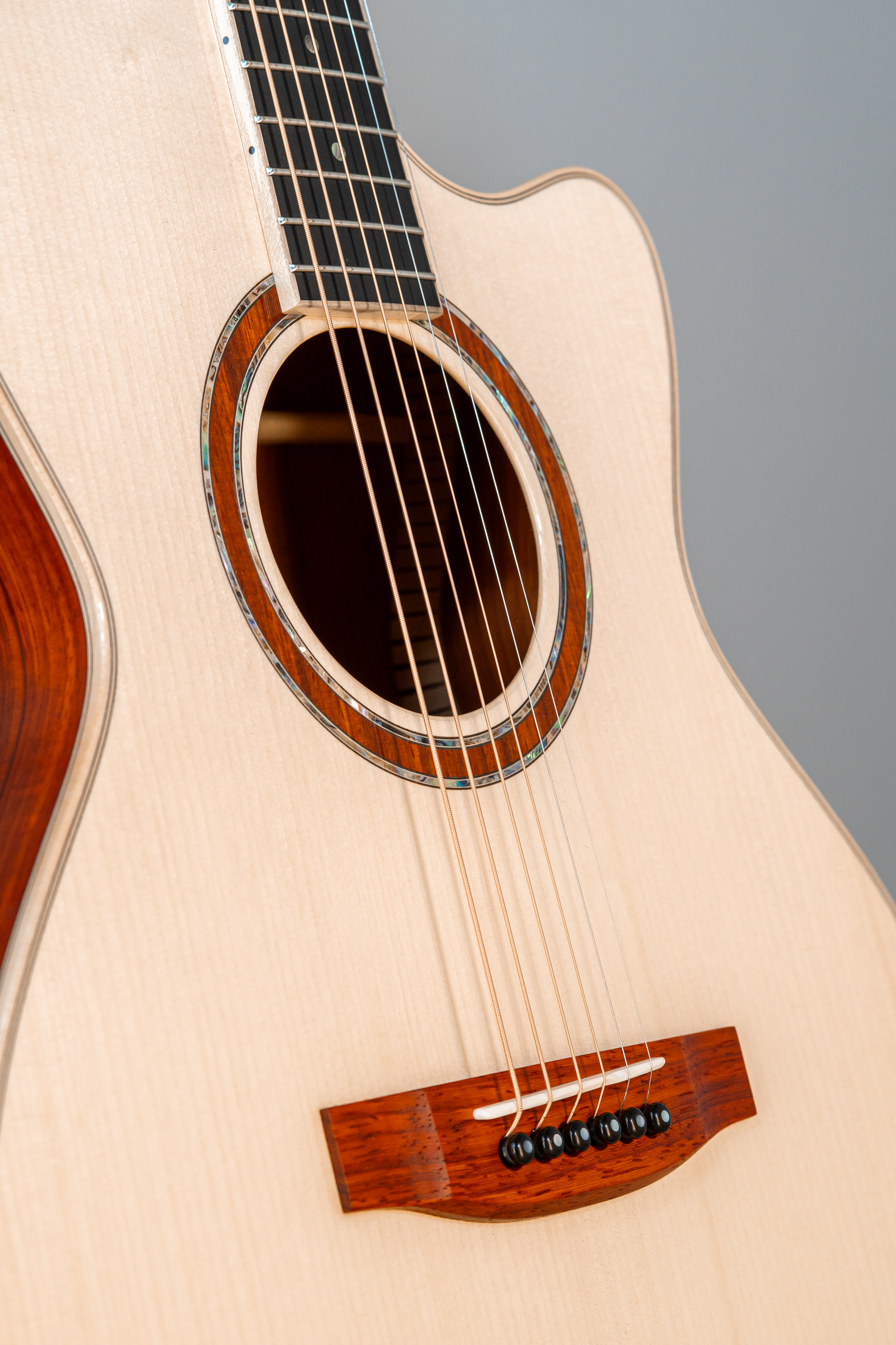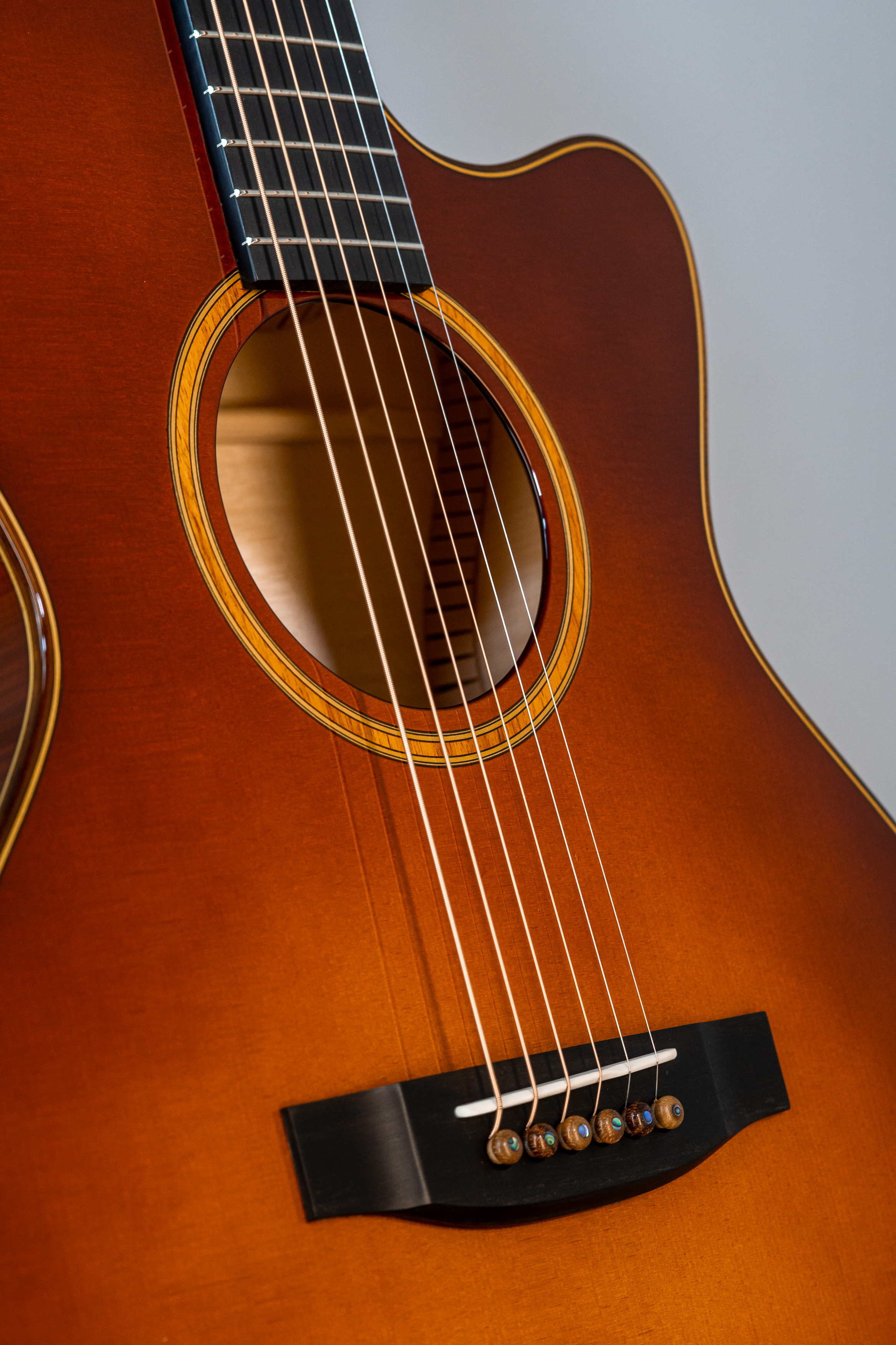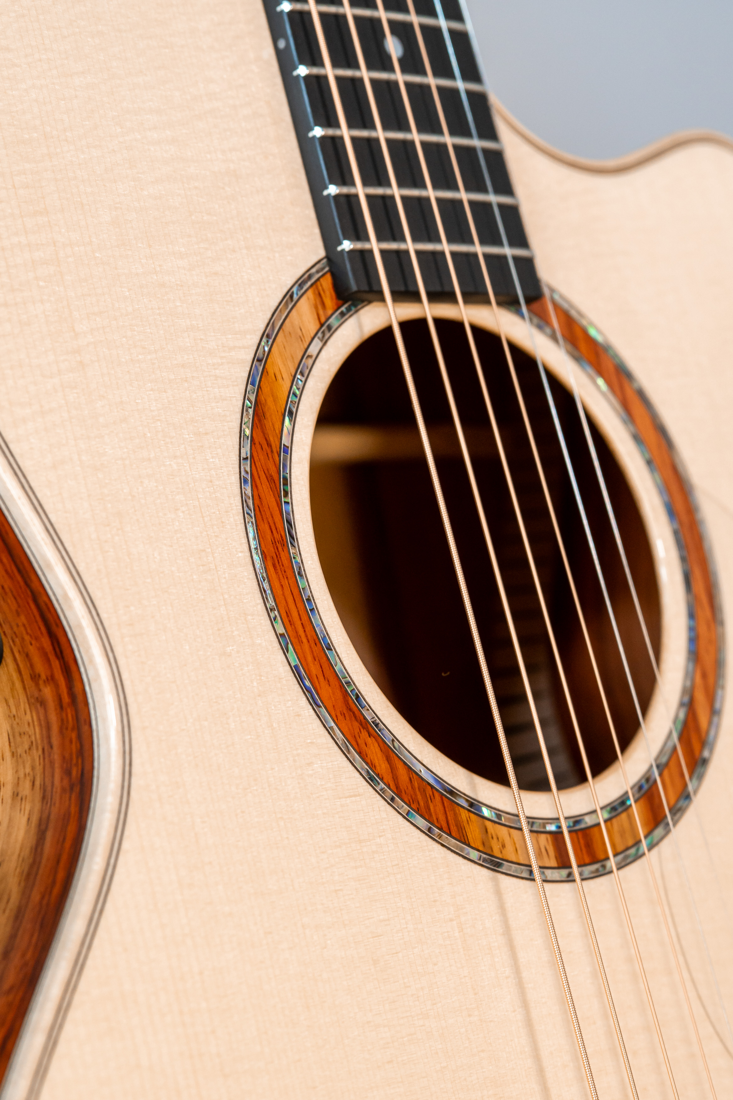 - Abalone purfling on soundbord, back and sides on cutaway-guitars