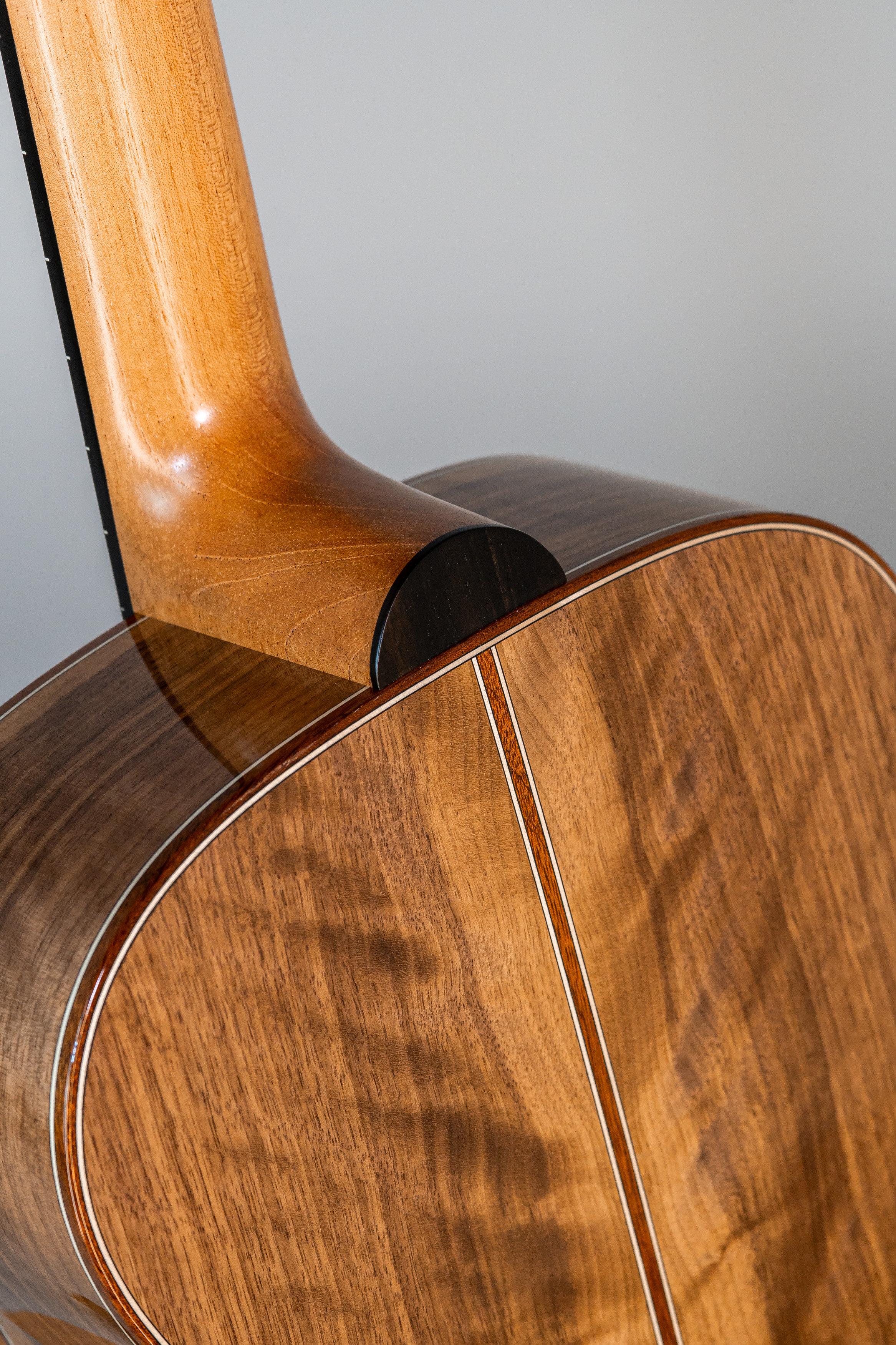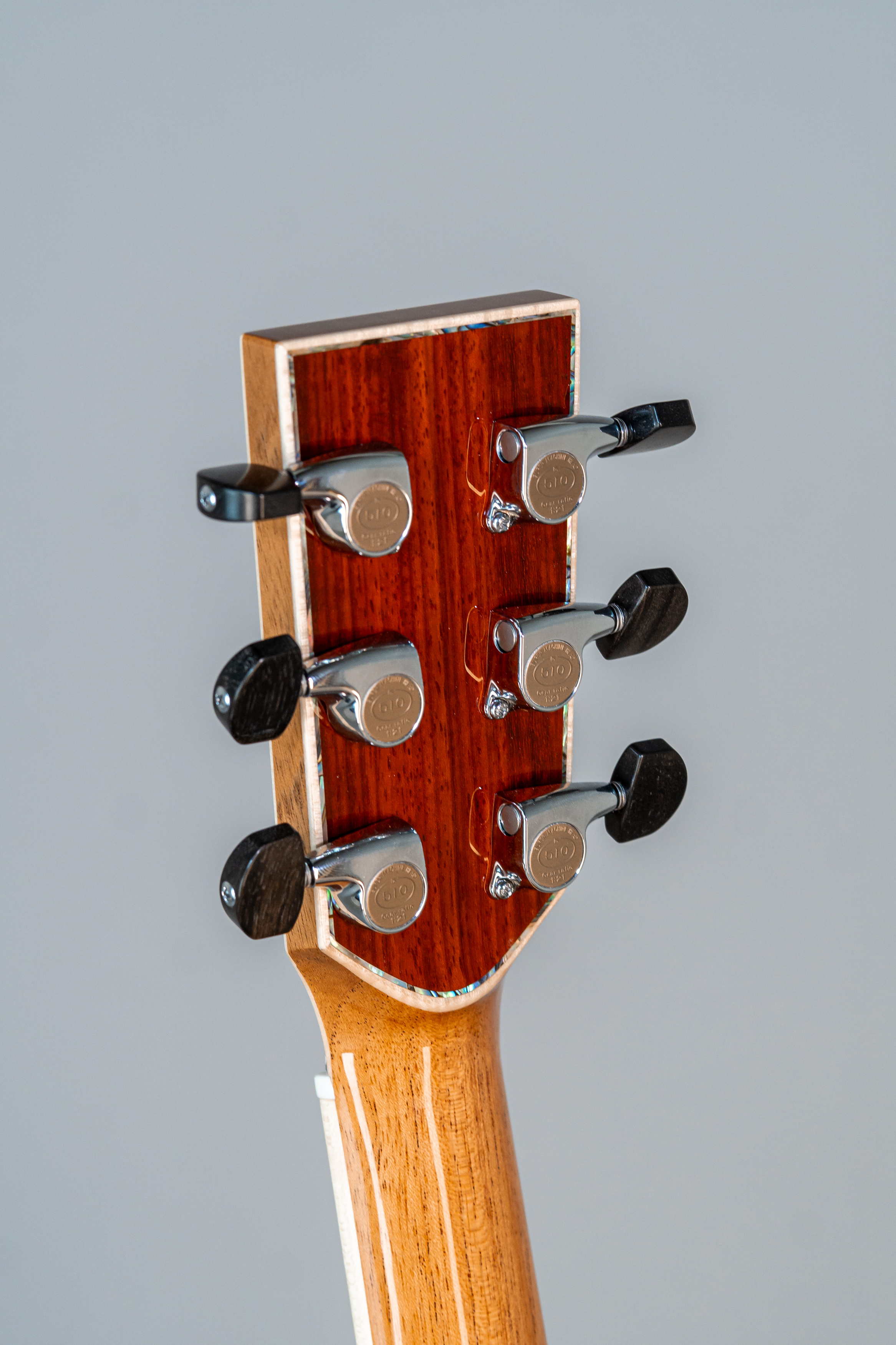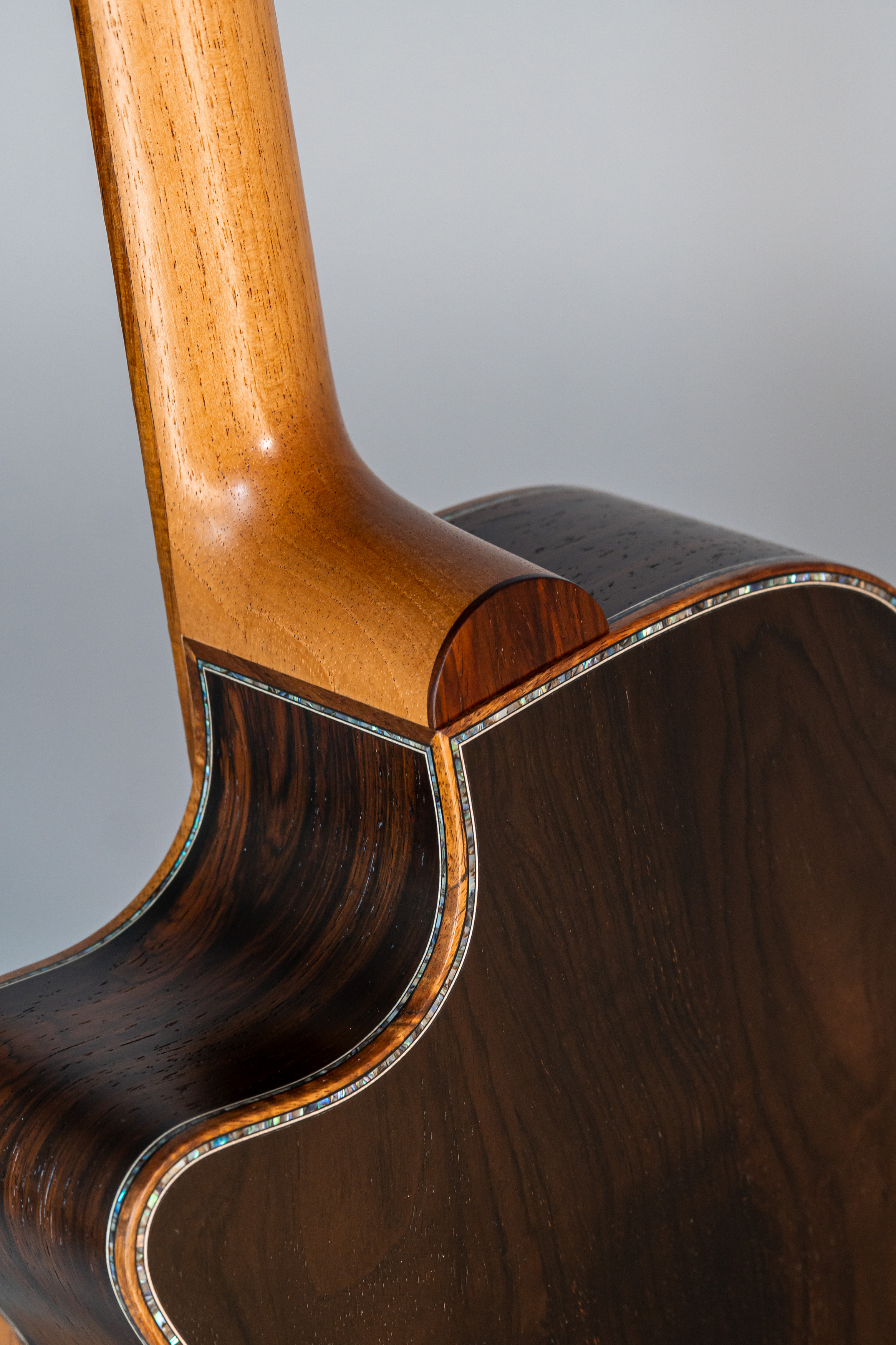 - Veneer on rear of headstock like front with binding and abalone purfling