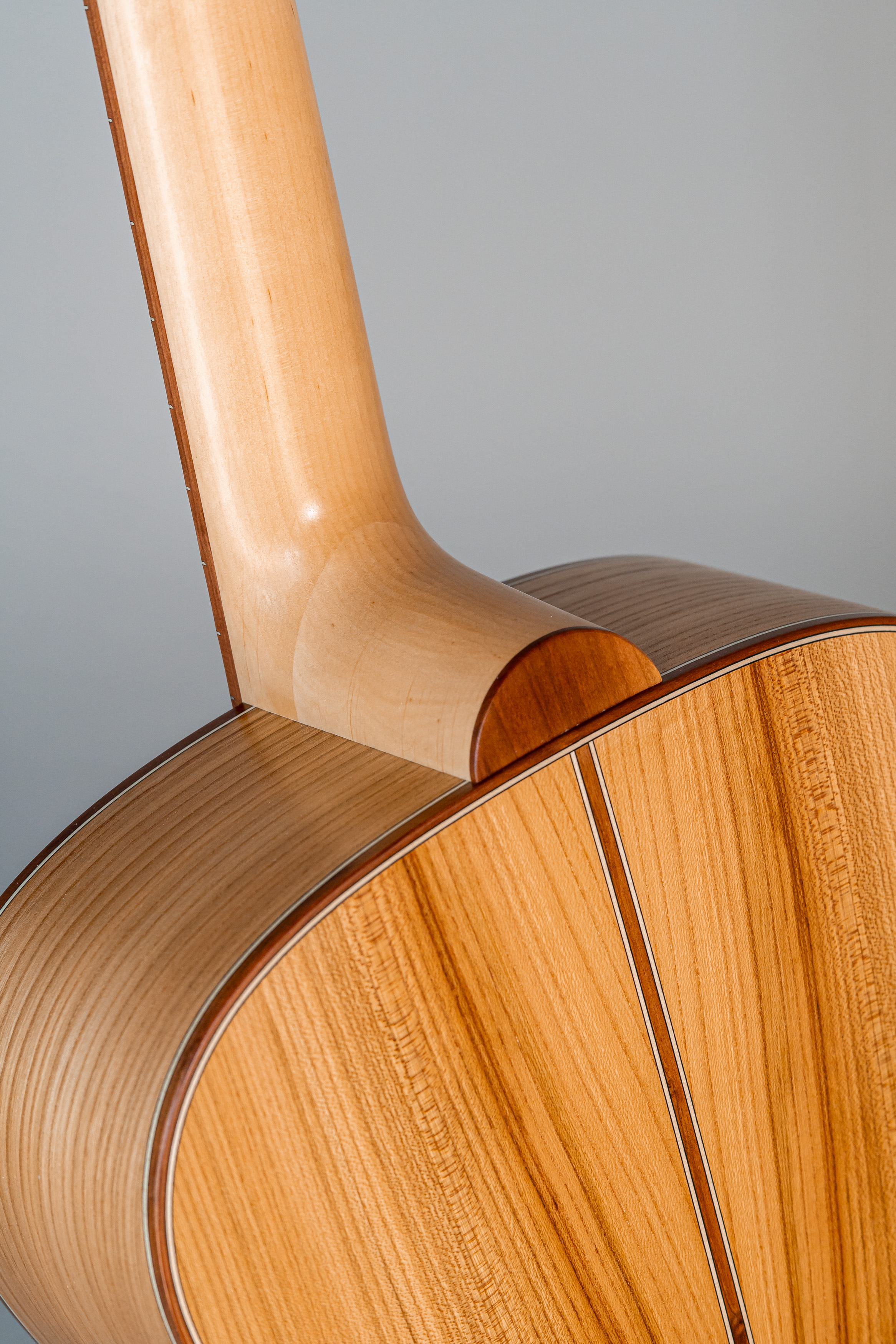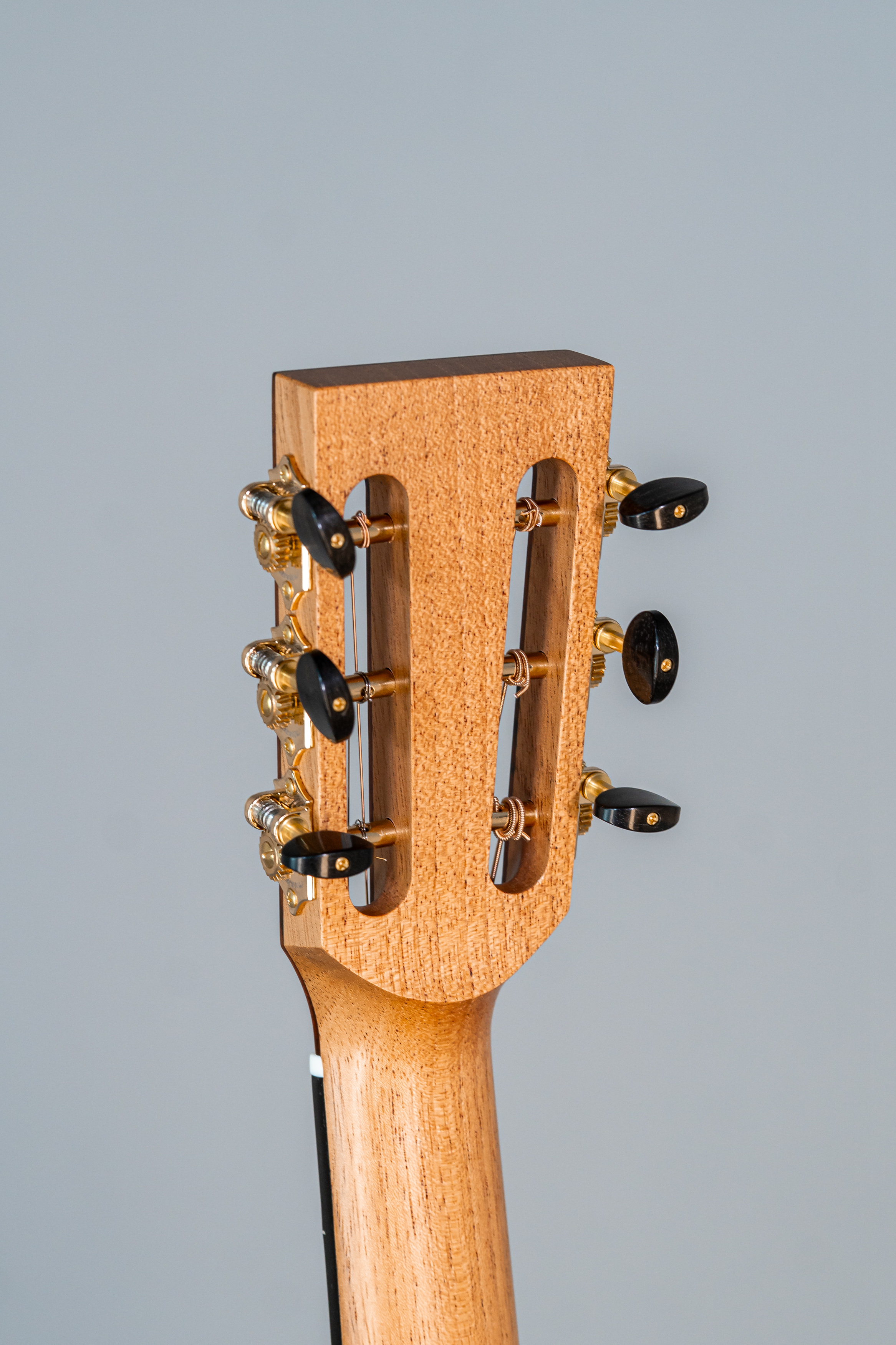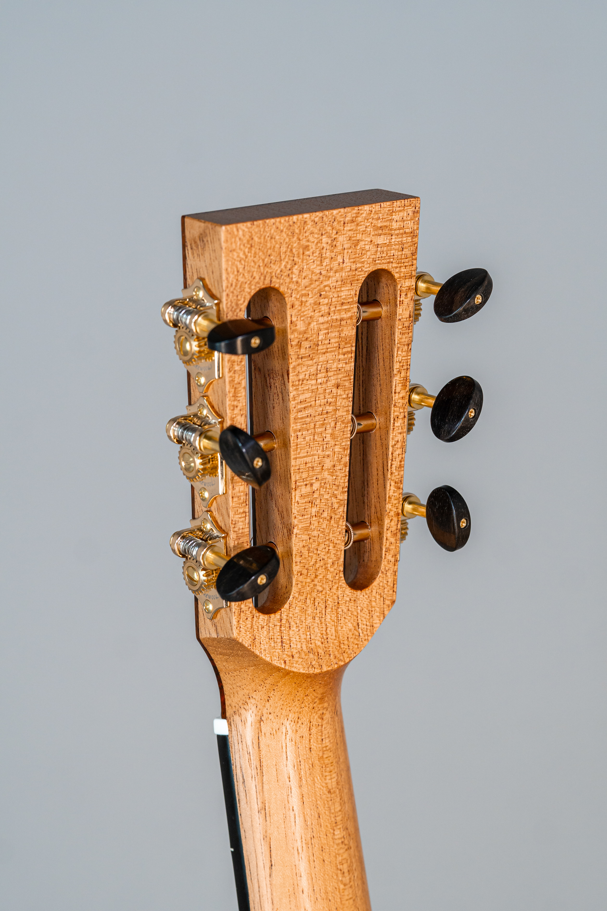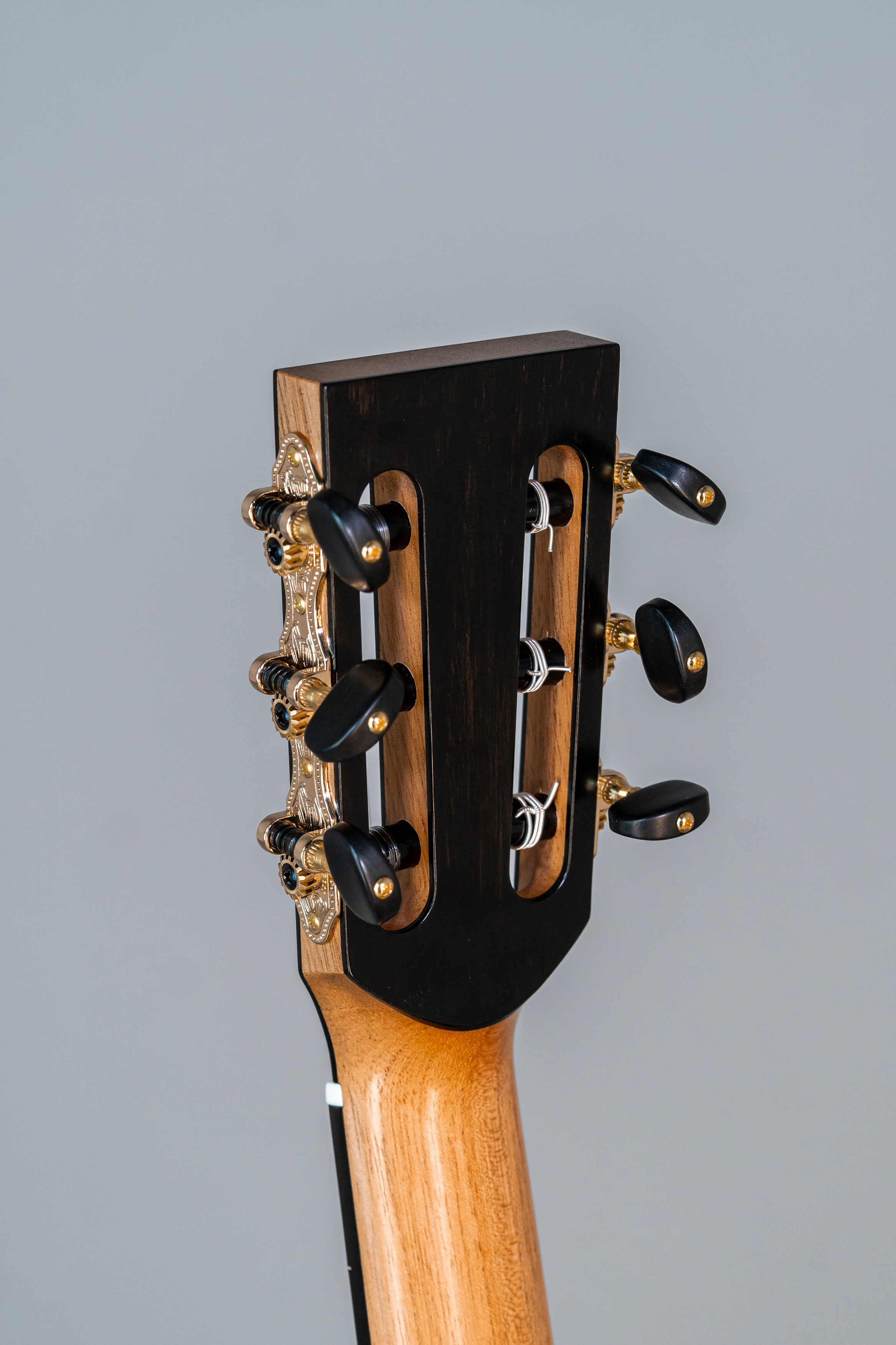 - Veneer on rear of headstock like front with binding and abalone purfling