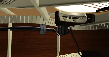 The L.R.Baggs Anthem System includes a control unit which is located under the sound board at the sound hole by means of three permanently elastic adhesive pads.
