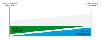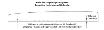 To achieve a correction of the octave for individual strings, the point of contact between that string and the saddle must be moved. If your tuner shows a positive deviation (+ Cent) in the frequency, the point of contact must be moved away from the sound hole. In the case of a negative deviation (- Cent), the point of contact needs to be moved closer to the sound hole.